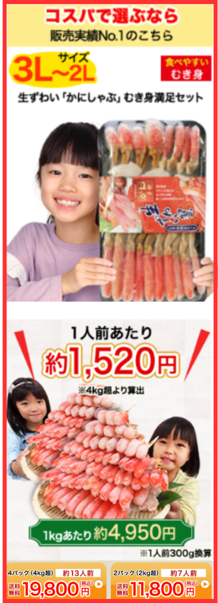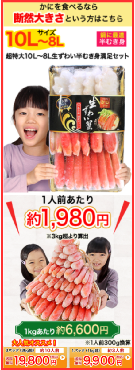 かに本舗独自のルートでお客様にお届けすることでさらにお安く