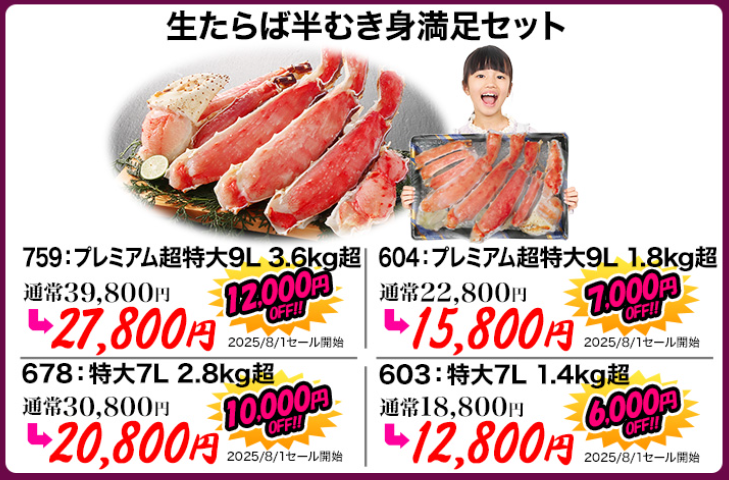バランス・超特大・食べやすいむき身、あなたにピッタリの満足セットを選んでください